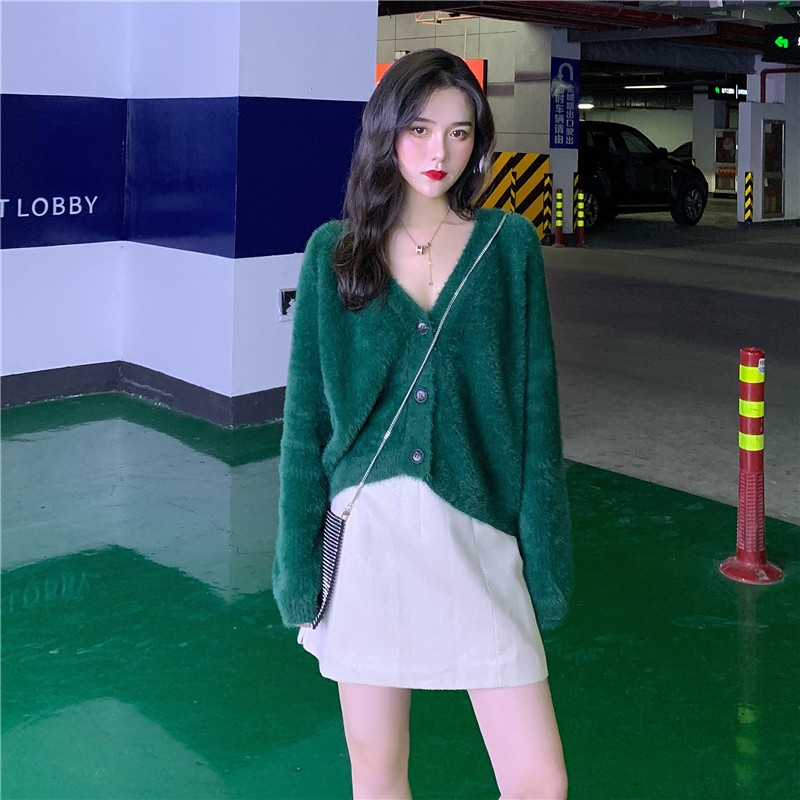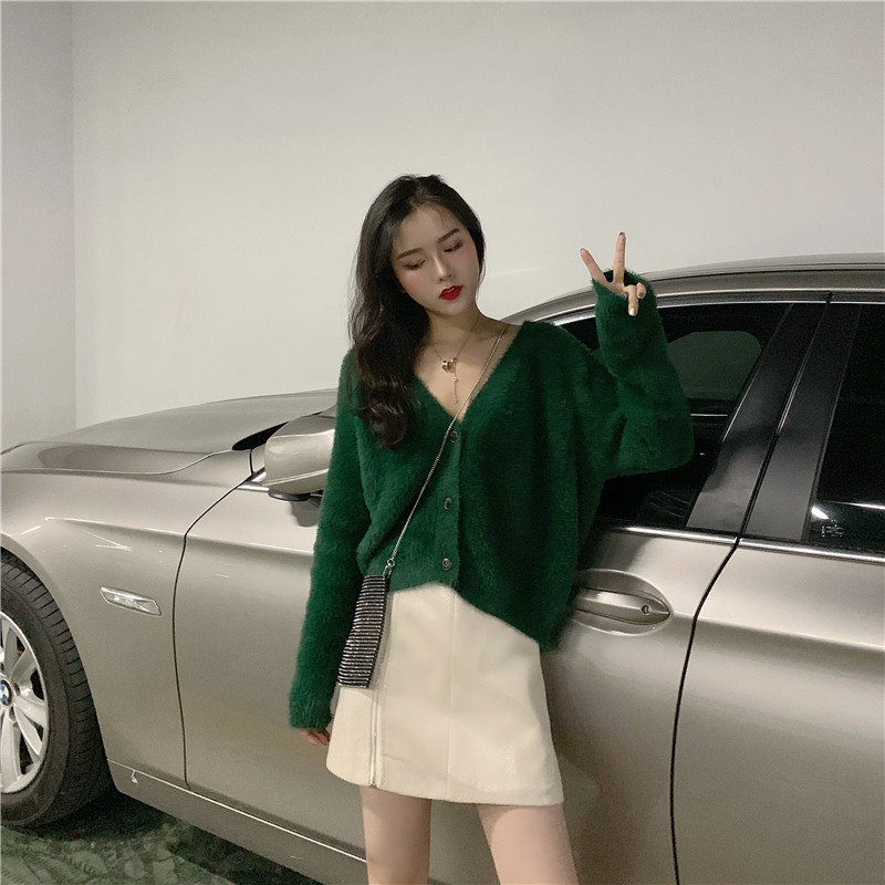 / 新款針織秋冬慵懶寬松短毛衣外套時尚套裝高腰包臀皮裙chic兩件套
