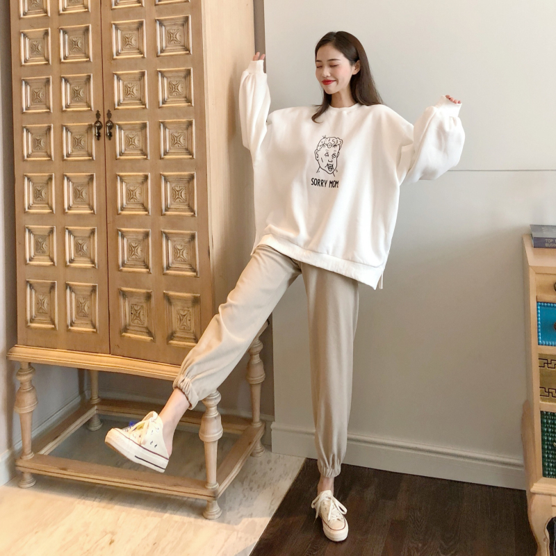 女神套裝秋冬新款慵懶風套頭毛衣網紅寬松針織衫+百搭毛呢哈倫褲