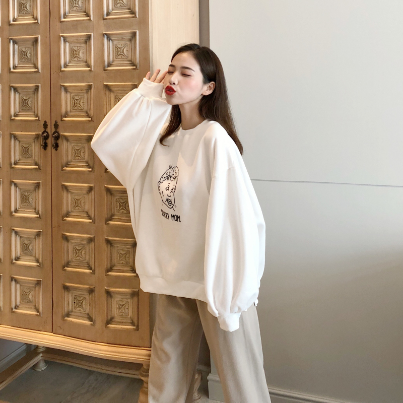 / 女神套裝冬寬松燈籠長袖加厚加絨衛衣女+高腰毛呢百搭束腳燈籠褲