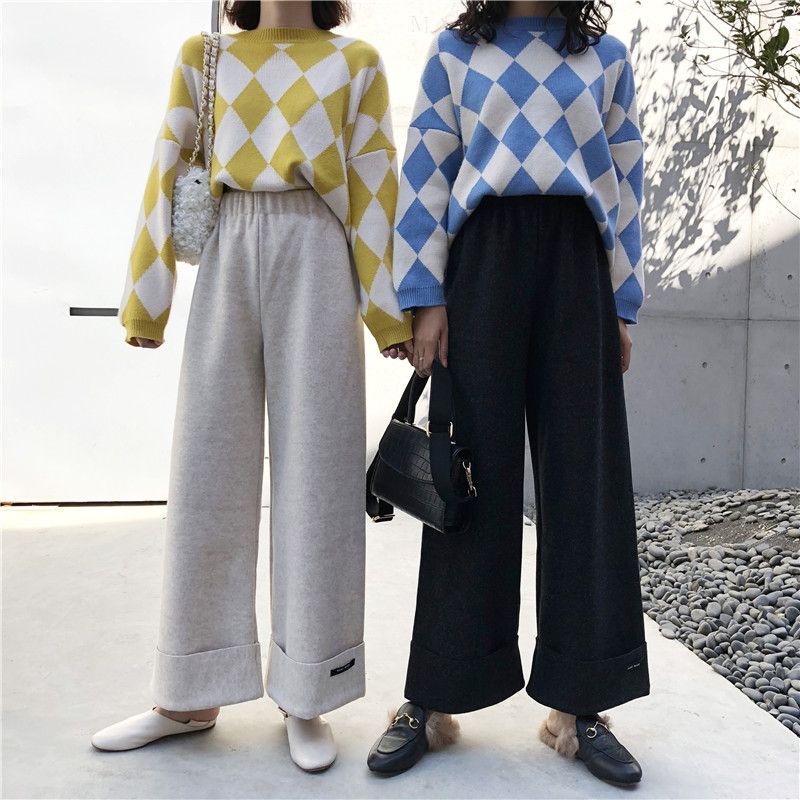 秋冬自然就少不了這種呢料的闊腿褲了哦