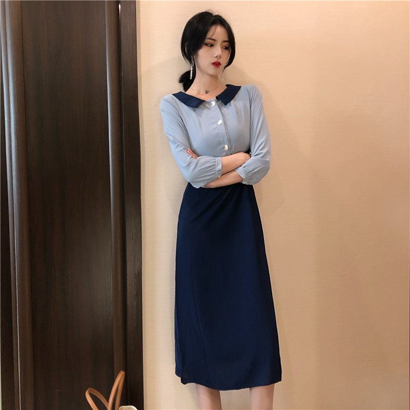 拼色宮廷復古連衣裙