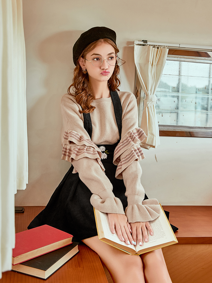 / MG小象木耳邊針織衫女套頭秋冬新款休閑時尚寬松毛衣復古chic上衣