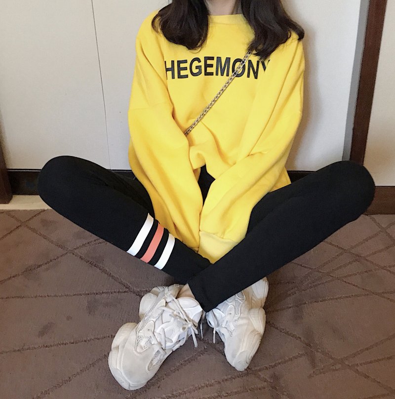 韓版女褲秋季2018新款春秋顯瘦運動打底褲女外穿兩條杠緊身小腳褲