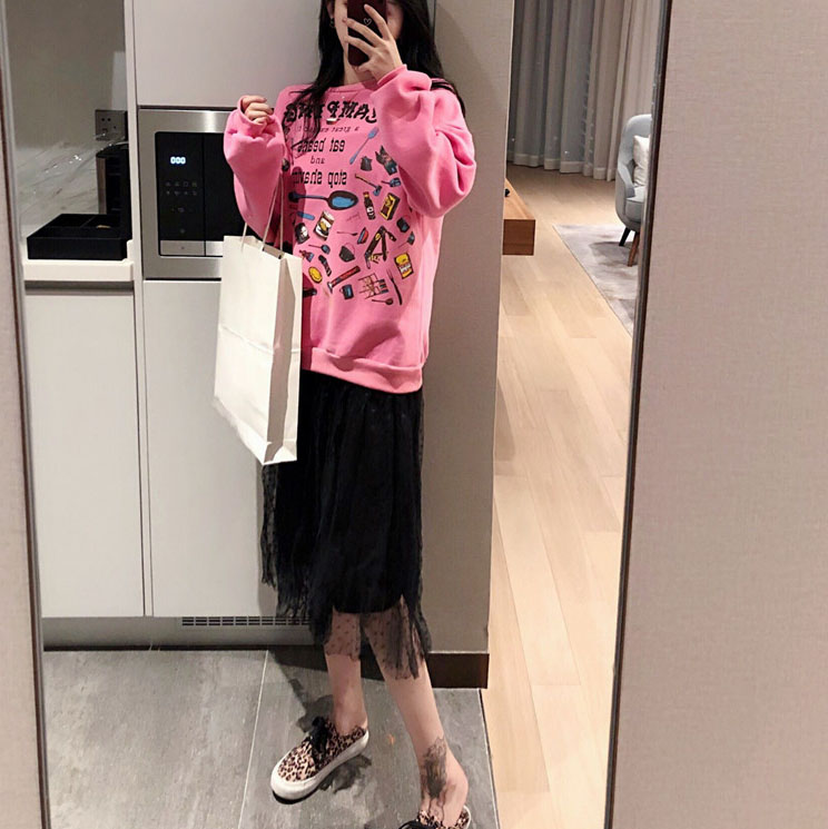/ 時尚字母印花加絨衛衣女秋冬2018新款+百搭修身中長款連衣裙套裝