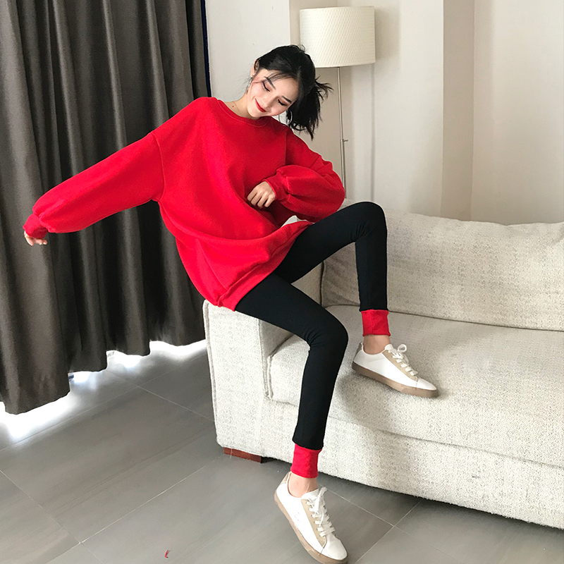 / 時尚套裝新款秋冬chic寬松加厚長袖上衣高腰修身加絨打底褲兩件套