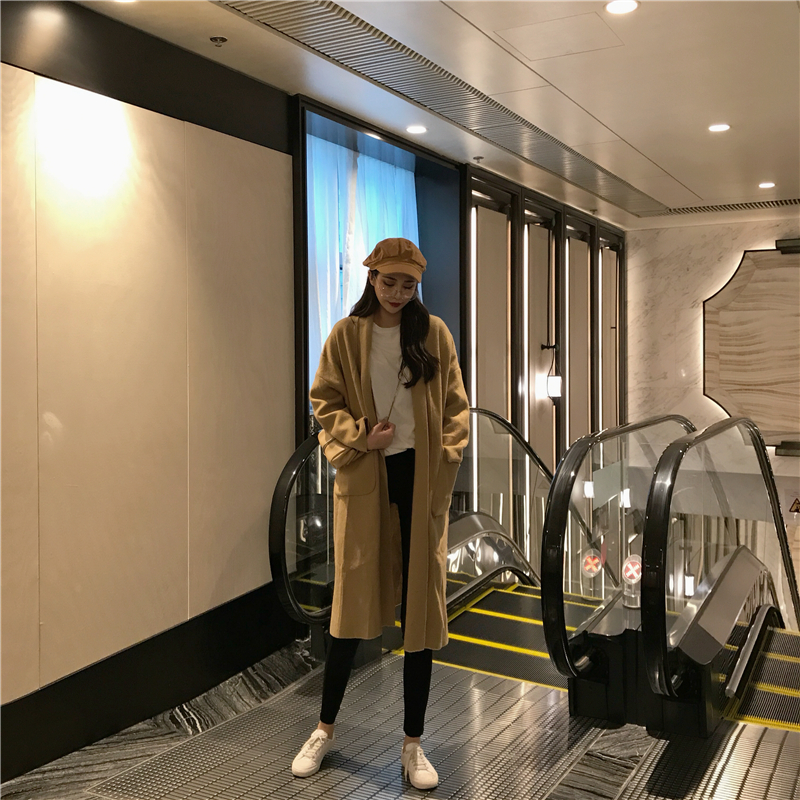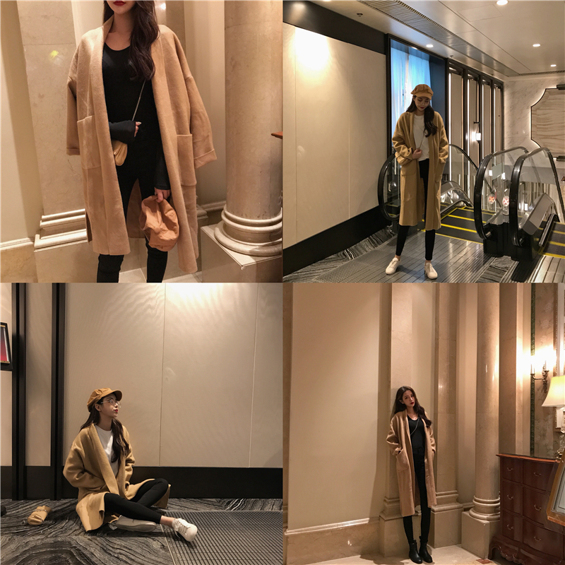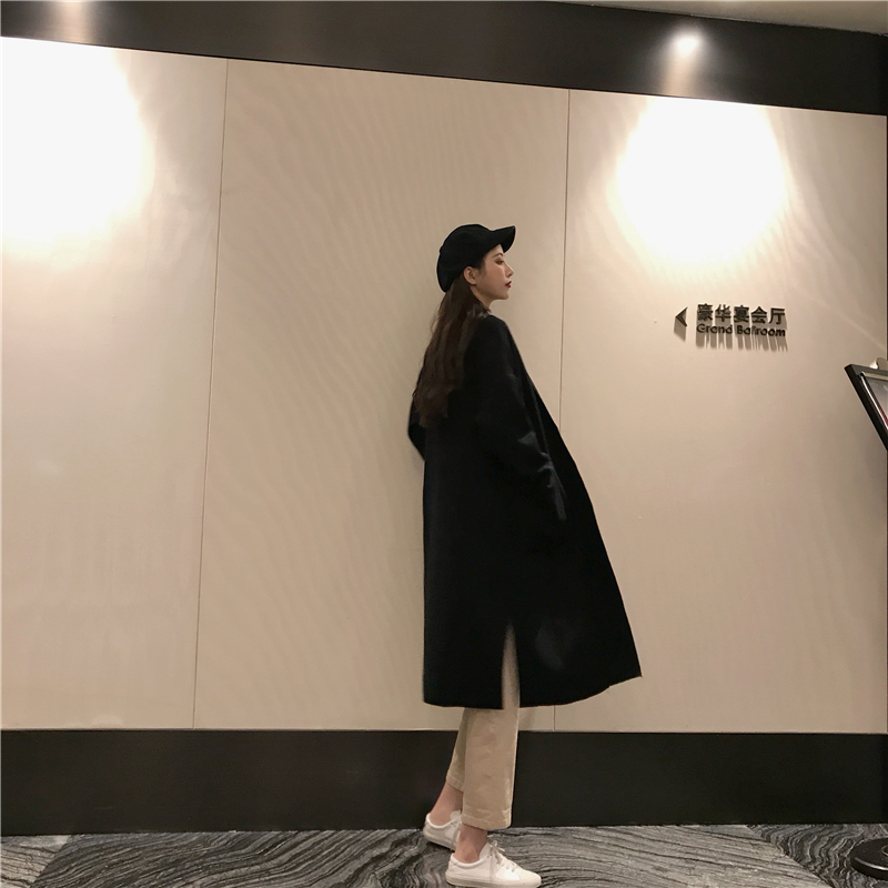 / 復古港風chic寬松百搭氣質新款韓版毛呢雙口袋開叉中長款外套女裝