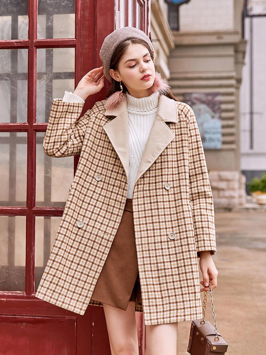 MG小象冬季寬松毛呢外套女2018流行新款韓版顯瘦格子學生呢子大衣