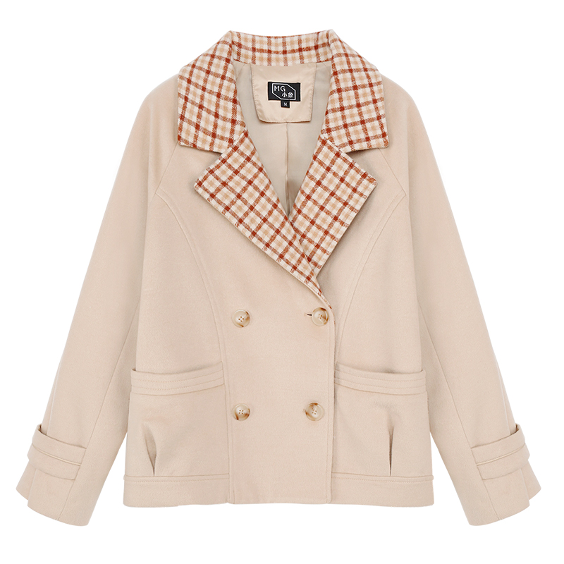 / MG小象冬季寬松毛呢外套女2018流行新款韓版顯瘦格子學生呢子大衣