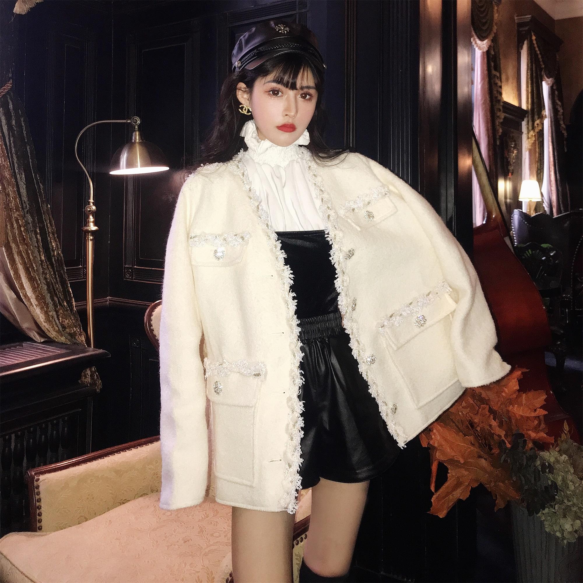 專門定制的鉆石花形扣裝飾點綴了整件衣服