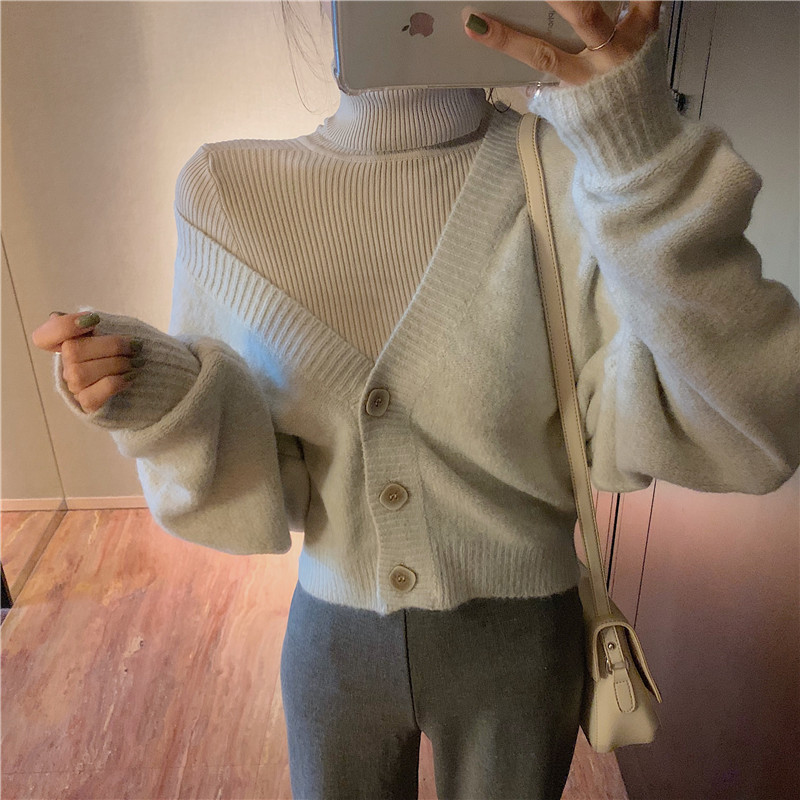 秋裝女2018新款套裝復古針織毛衣外套女+針織高領打底+純色闊腿褲