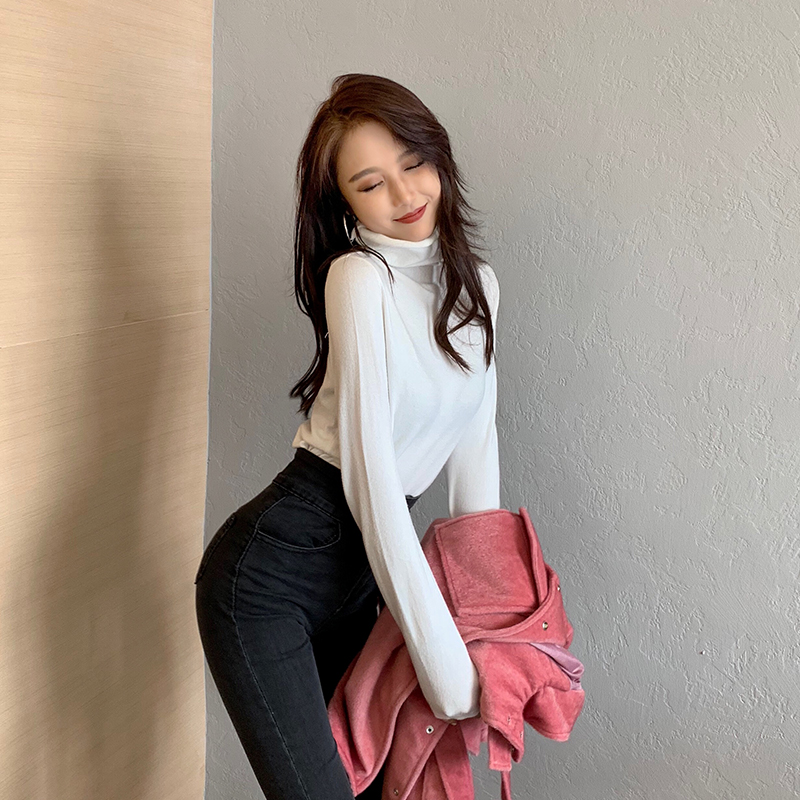 chic秋季新款韓版上衣女裝百搭修身顯瘦高領長袖復古針織打底衫潮
