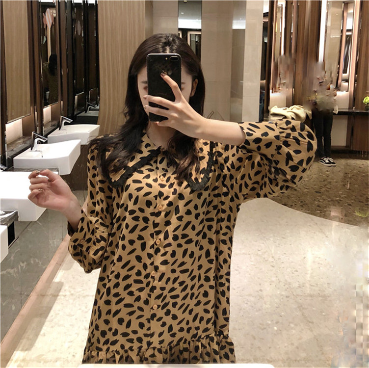 / 新款韓版復古流蘇娃娃領豹紋收腰連衣裙圓領套頭毛衣女時尚套裝潮