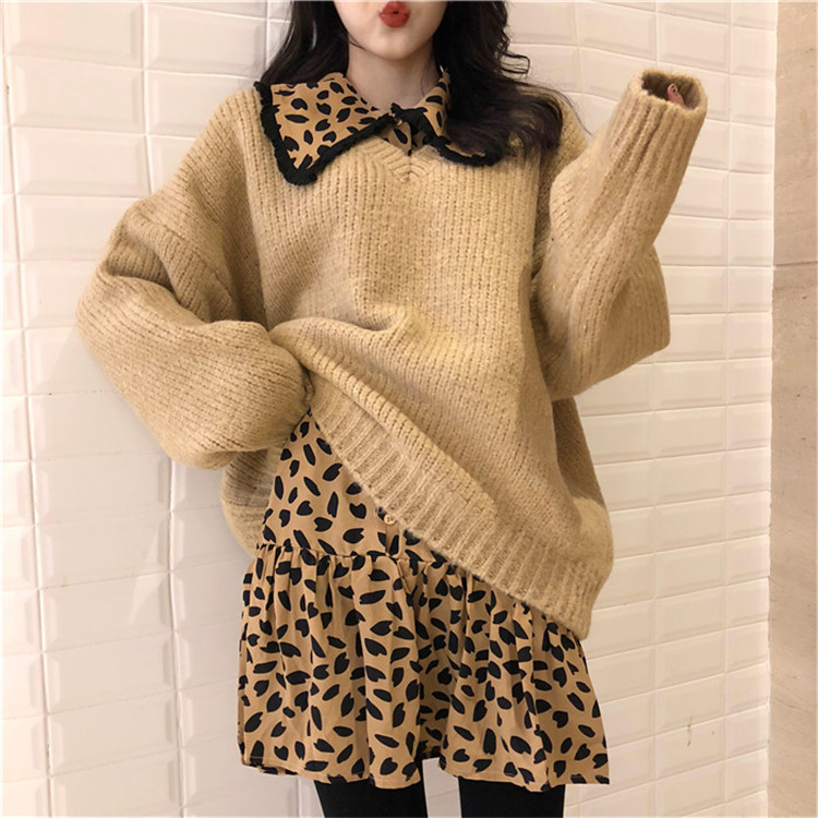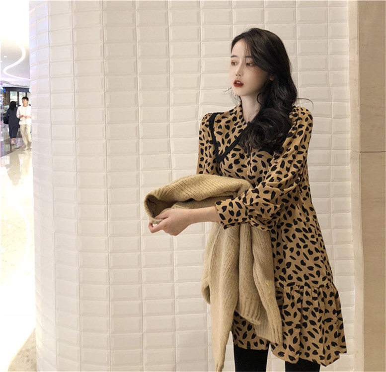 豹紋連衣裙|卡其色毛衣