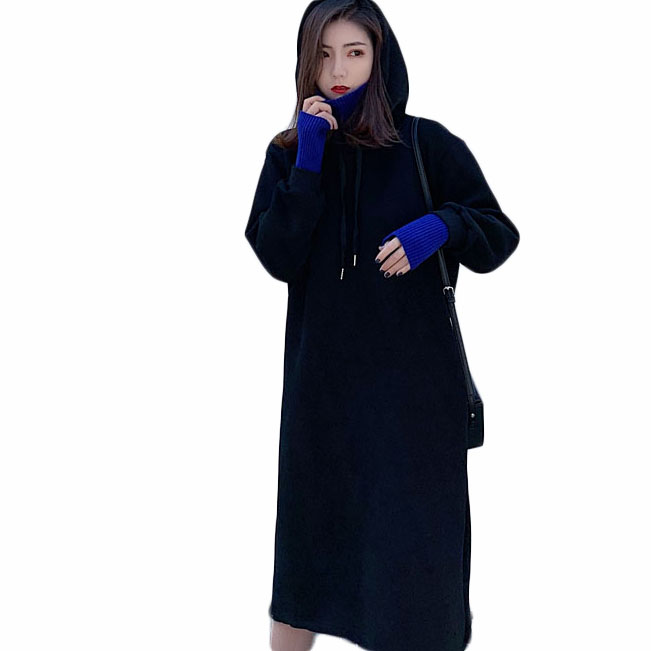 衛衣2018新款女長袖韓版寬松顯瘦oversize印花半高領慵懶長款裙子