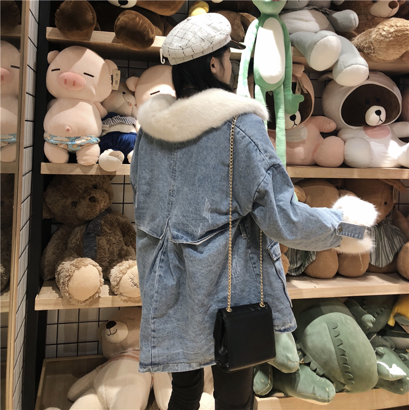 / 港味加厚保暖牛仔棉衣冬季大毛領毛毛袖學生百搭可愛收腰牛仔外套