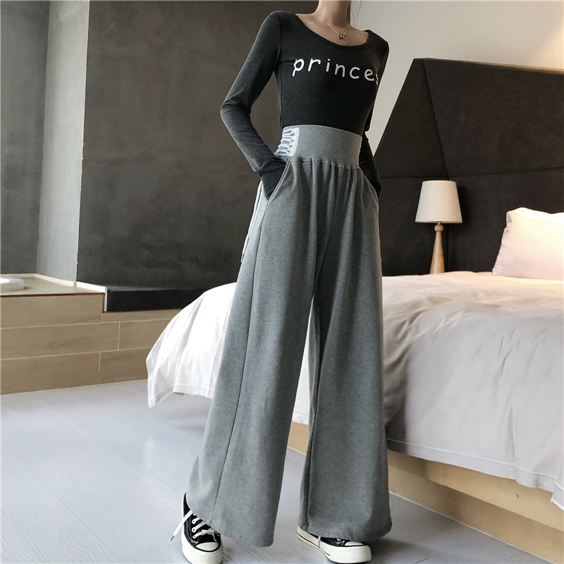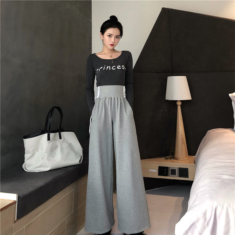 新款百搭圓領字母印花T恤高腰闊腿褲晚晚風休閑時尚港味氣質套裝