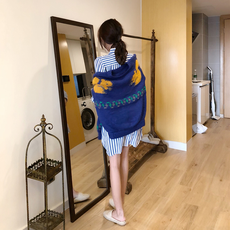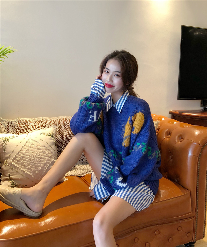 / 2018秋季新款女裝百搭bf風條紋襯衣早秋套頭毛衣韓版港風時尚套裝