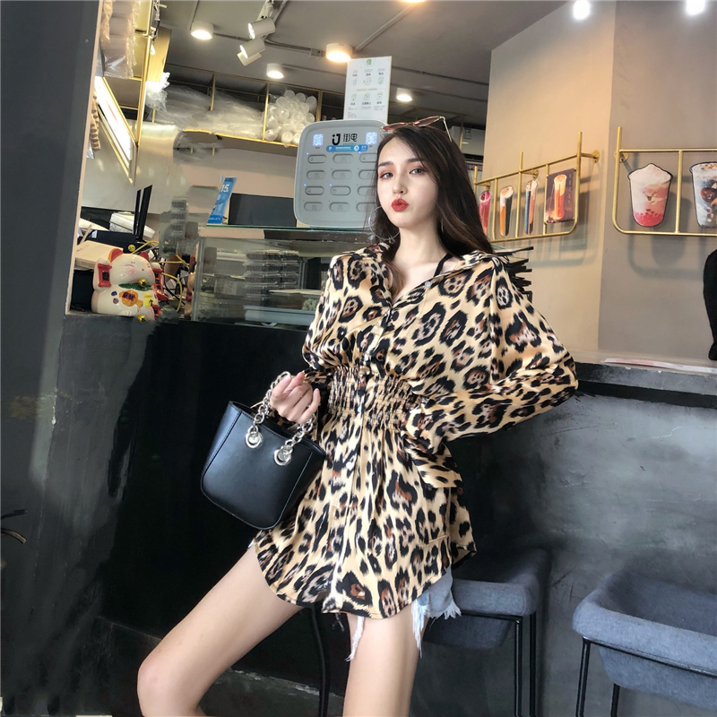 / 港味簡約時尚氣質百搭復古chic豹紋秋季新款韓版收腰中長款襯衣女