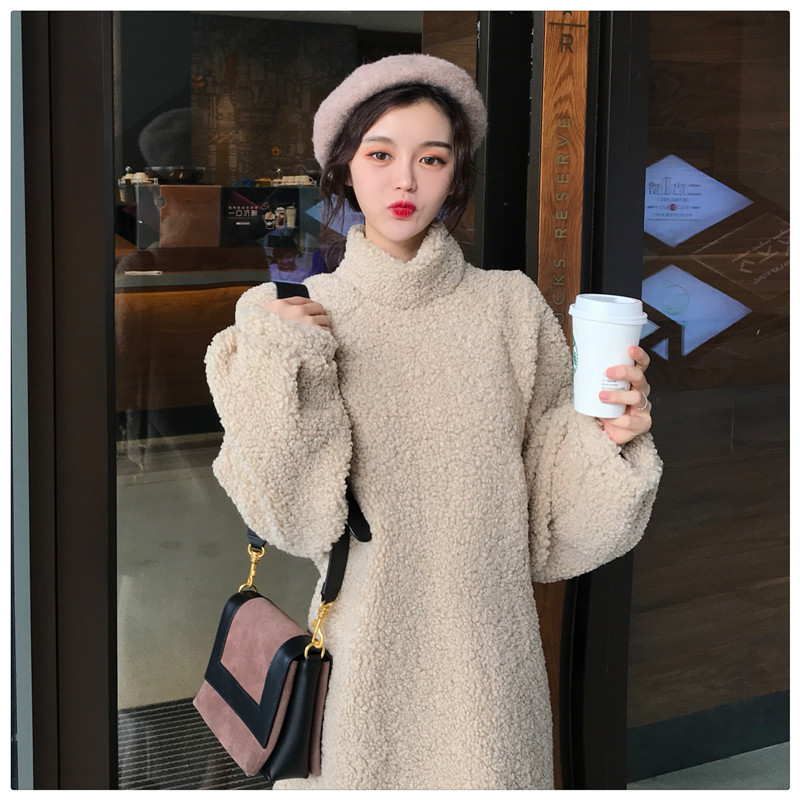 女神套裝秋冬新款網紗背心裙+毛毛高領側面開叉連衣裙外套兩件套