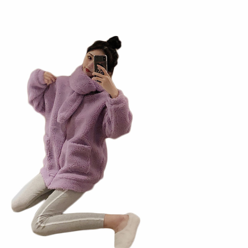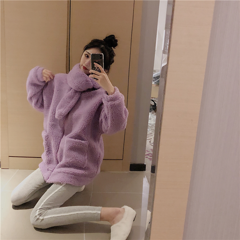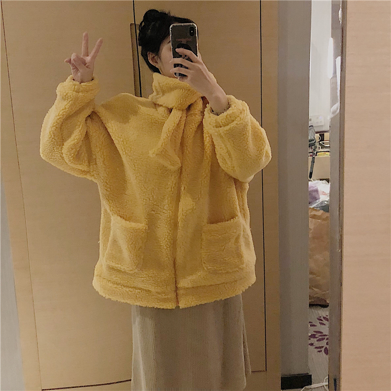 糖果色寬松百搭ulzzang仿羊羔毛長袖保暖圍巾外套女冬季2018新款