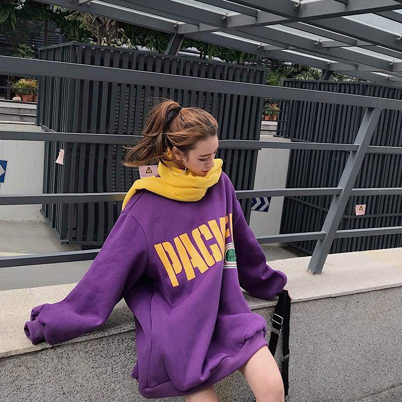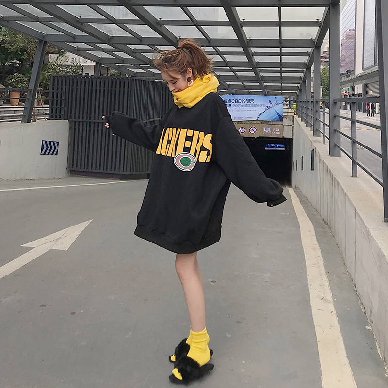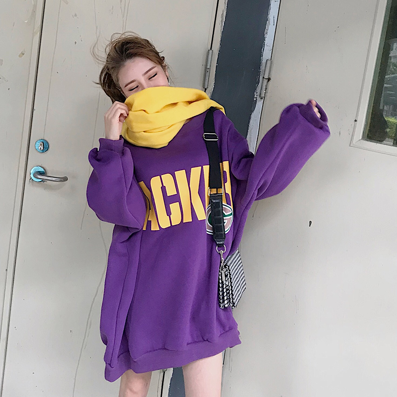 / 2018秋冬新款韓版小清新中長款加厚保暖上衣時尚chic衛衣潮送圍巾