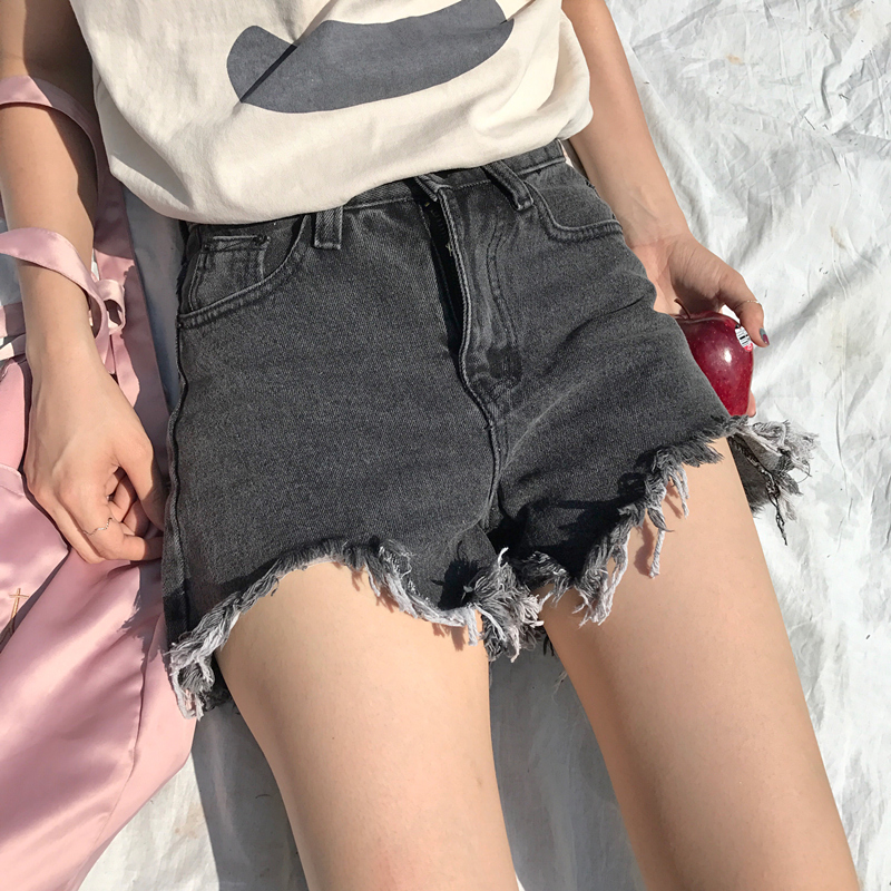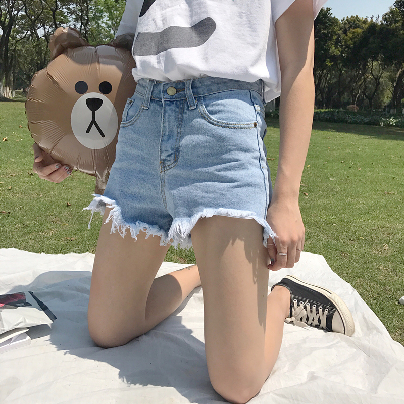 / 牛仔短褲女新款2018韓國chic學生高腰直筒褲須邊不規則百搭顯瘦潮