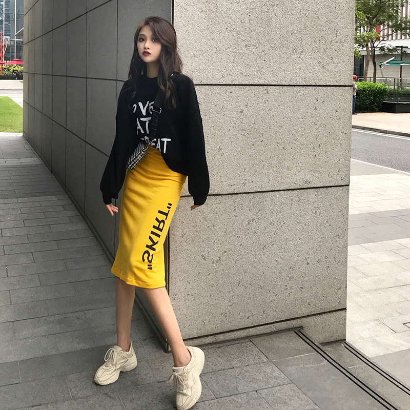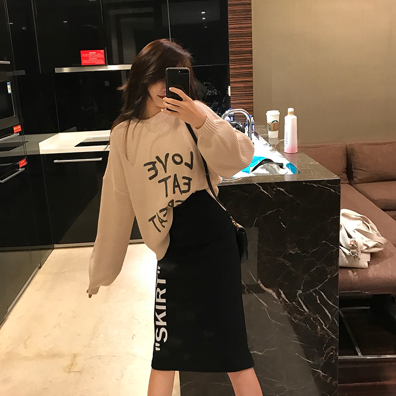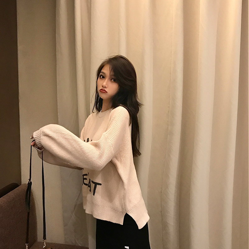 毛衣女2018秋冬新款chic慵懶風寬松百搭字母印花長袖圓領針織上衣