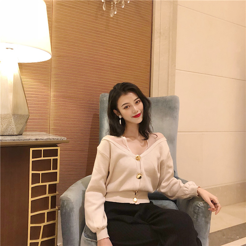 / chic早秋上衣新款氣質針織韓版小心機百搭毛衣女時尚休閑長袖開衫