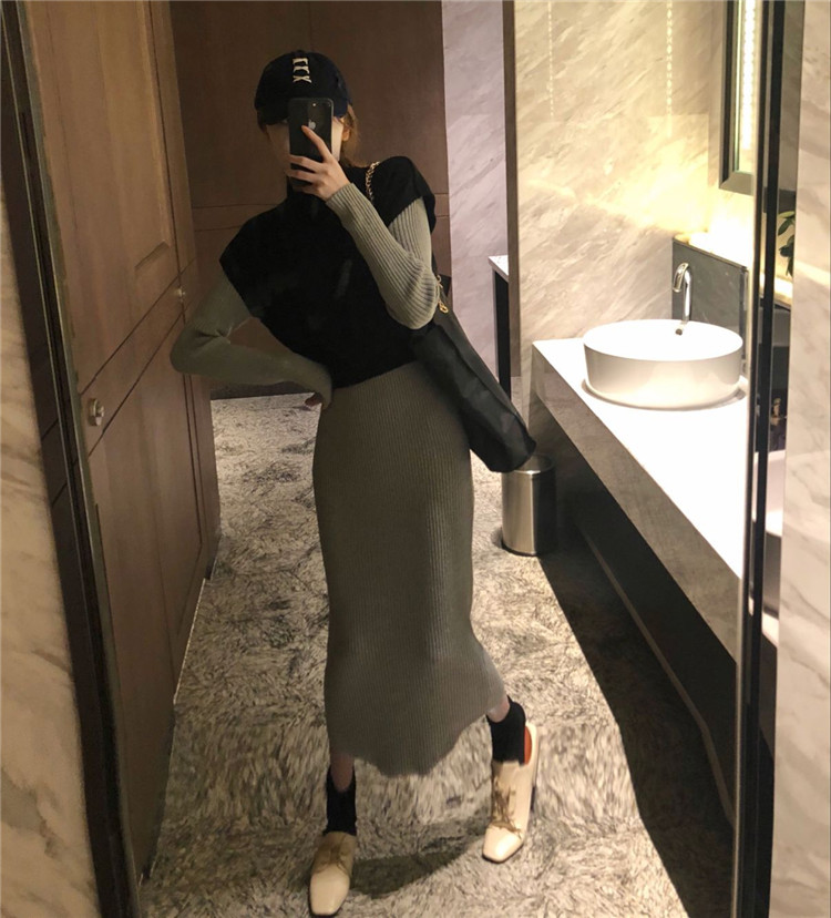/ 小香風套裝秋女2018新款韓版百搭時尚上衣顯瘦中長款連衣裙兩件套