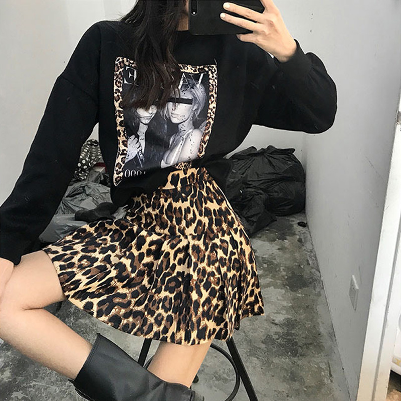 2018秋冬新款韓版時尚套裝長袖寬松印花衛衣高腰半身短裙兩件套女