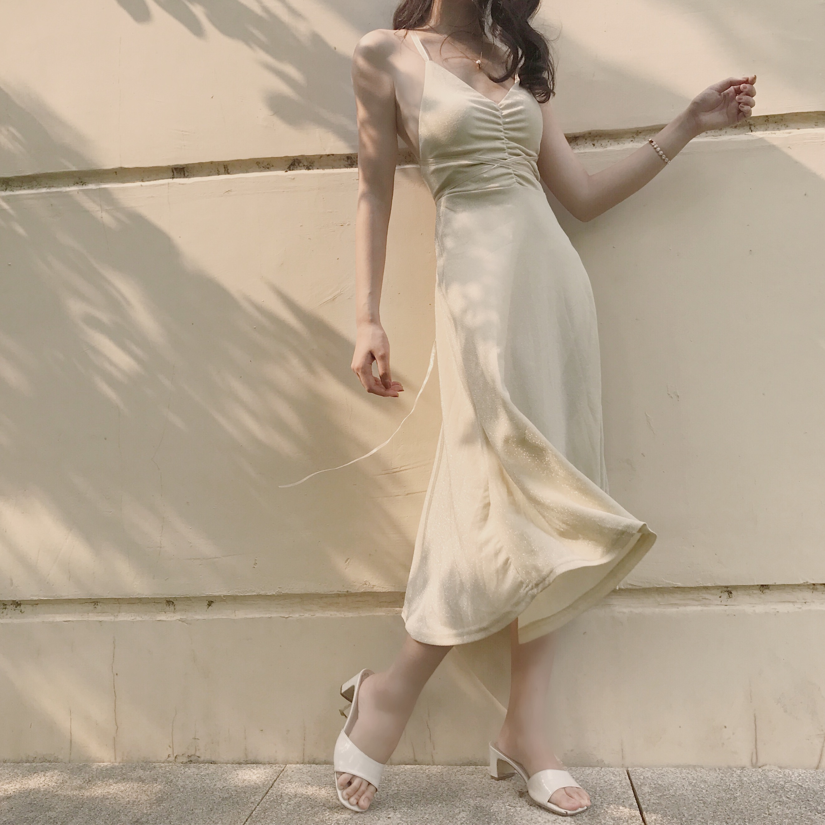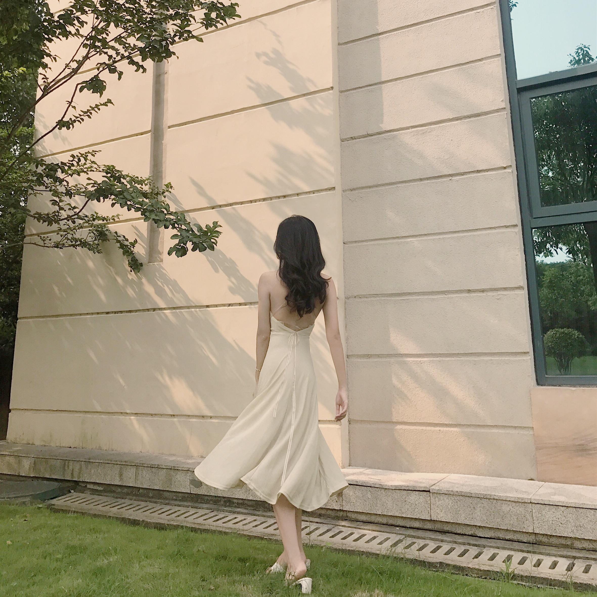 / 連衣裙2018新款女復古風度假風露背小心機設計感時尚百搭絲帶裙子