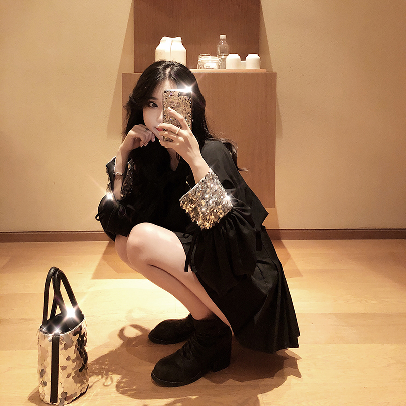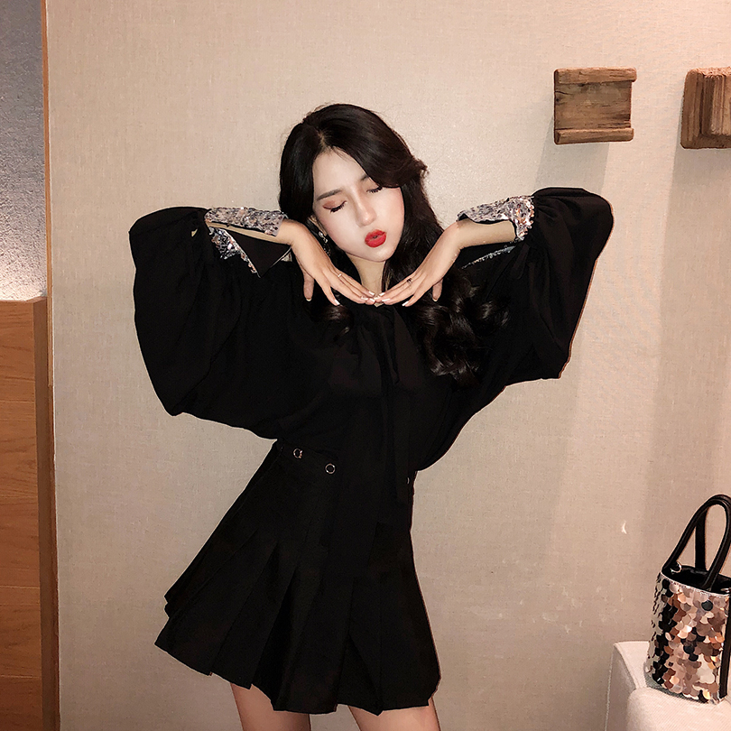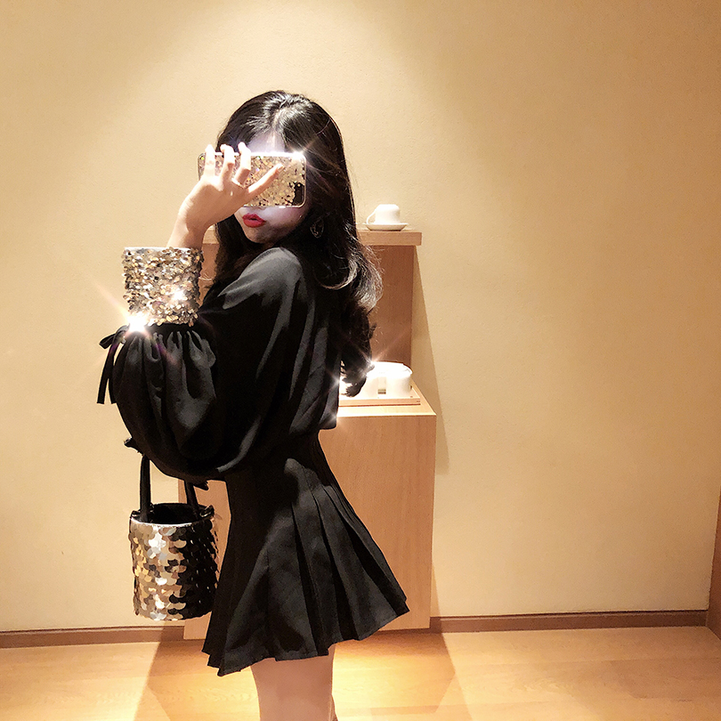 港味2018秋裝新款小眾亮片袖口寬松顯瘦百搭收腰時髦復古chic襯衫