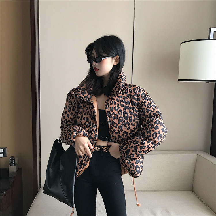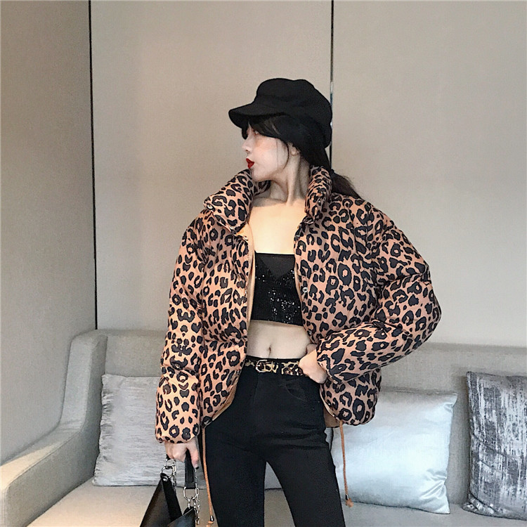 / 2018秋冬新款時尚洋氣豹紋高領寬松百搭面包服