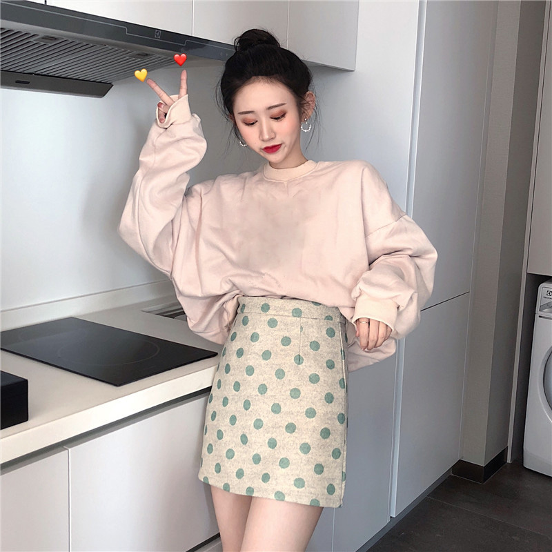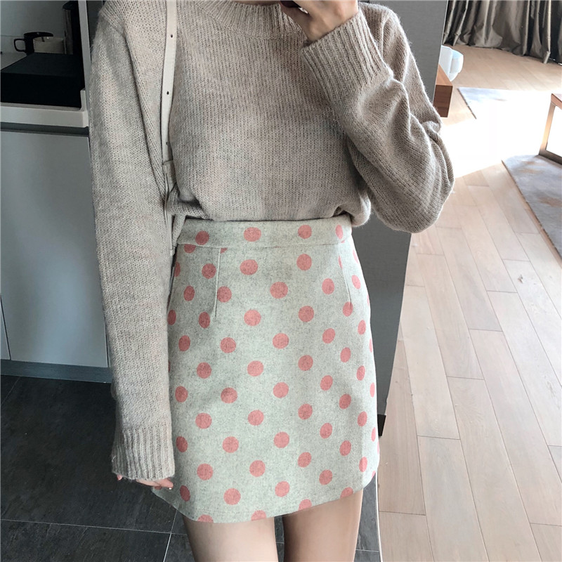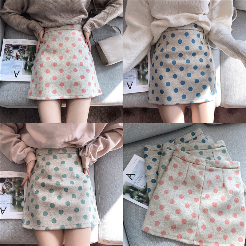 裙子女秋冬新款韓版chic高腰顯瘦氣質包臀復古百搭波點毛呢短裙潮