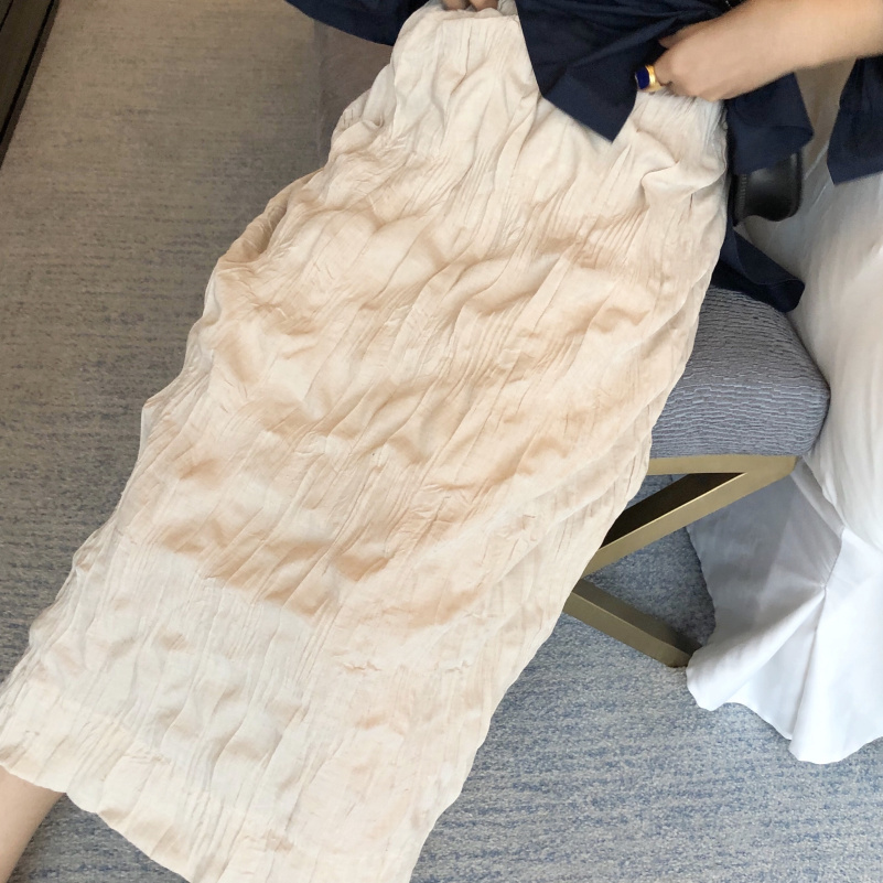 / 新款韓版袖子設計感寬松長袖襯衫時尚套裝高腰褶皺中長款半身裙女