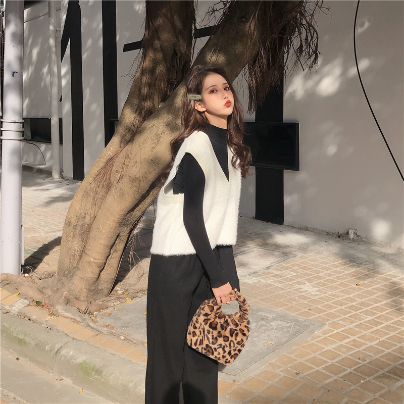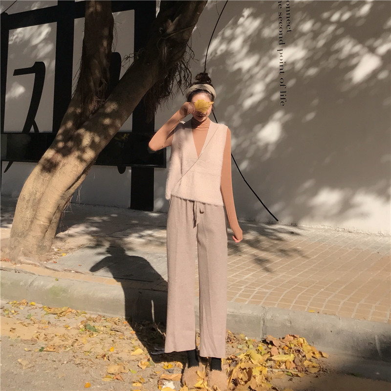 / 韓版時尚秋裝女2018新款套裝百搭水貂毛馬甲+高腰加厚百搭闊腿褲