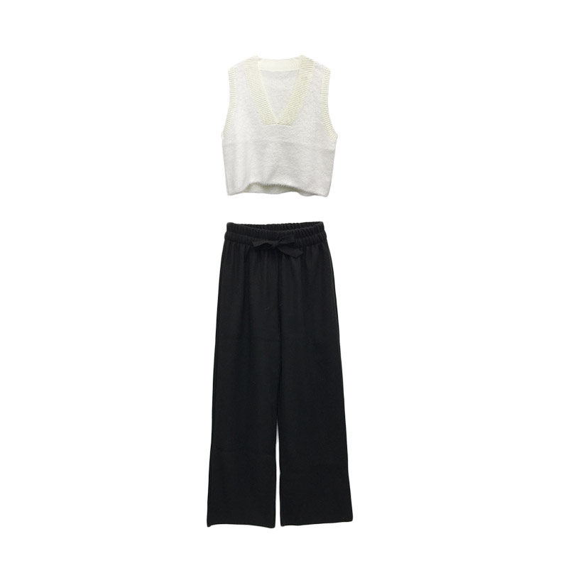 白色馬甲|粉卡色馬甲|卡其色褲子|黑色褲子
