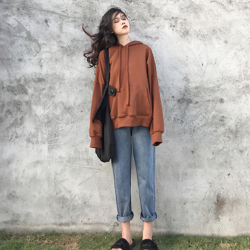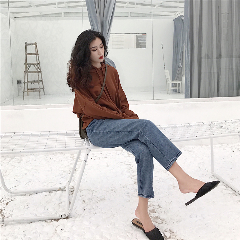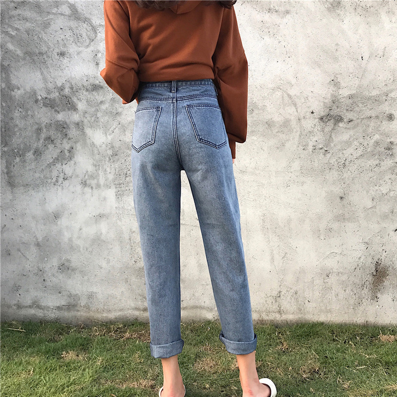 秋裝女2018新款復古港味九分褲學生韓版寬松高腰原宿直筒牛仔褲女