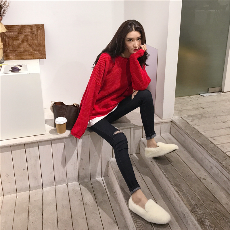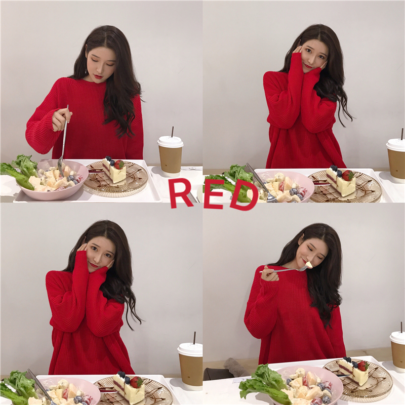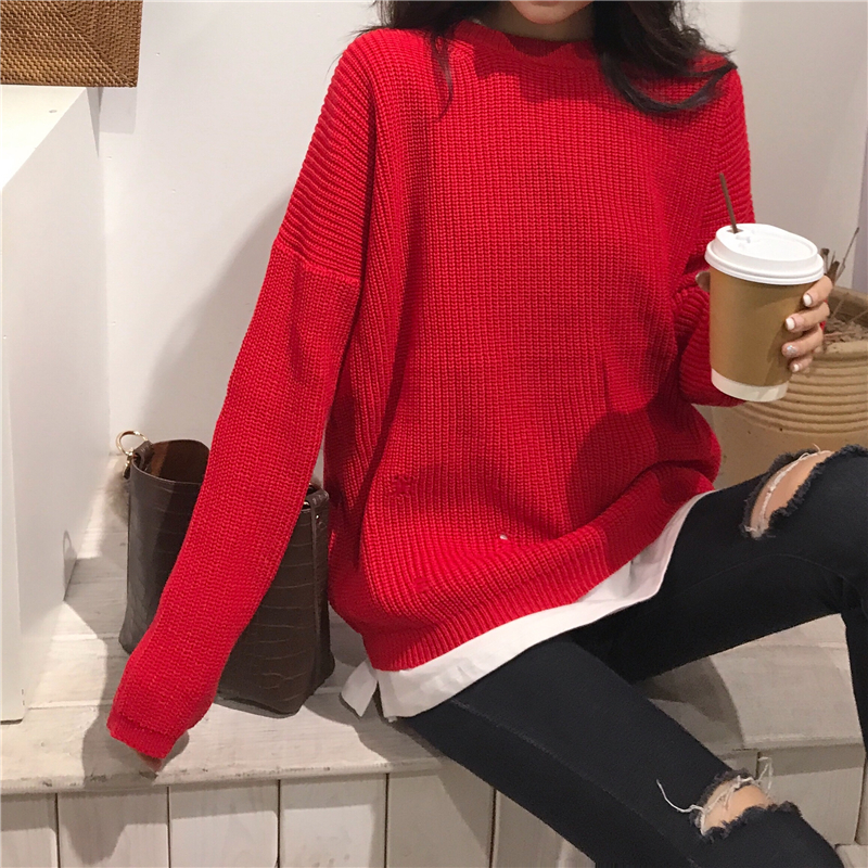 港味網紅同款打底毛衣外套女秋冬2018新款韓版寬松套頭長袖針織衫