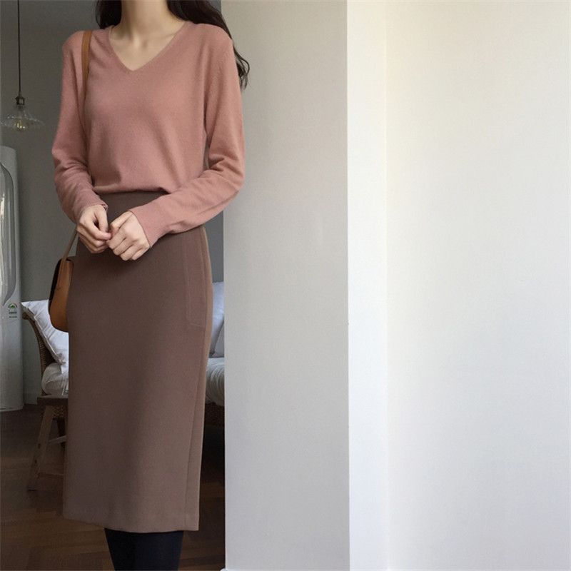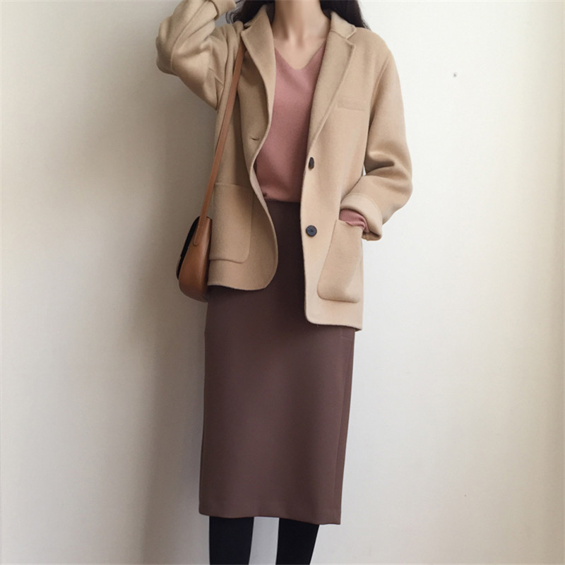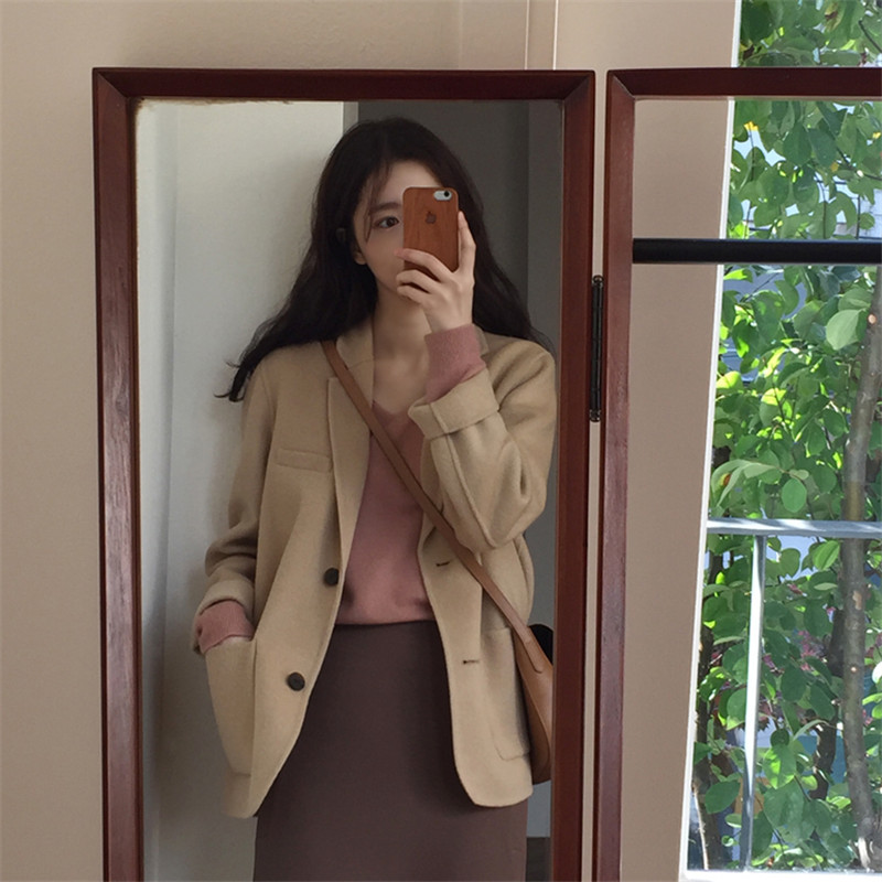 / 時尚慵懶風新款韓版秋季時尚套裝針織毛衣半身裙毛呢外套大衣女潮