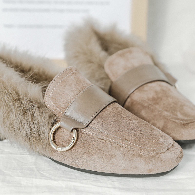 / MG小象懶人一腳蹬女鞋冬季2018新款加絨保暖時尚淺口磨砂平底鞋子