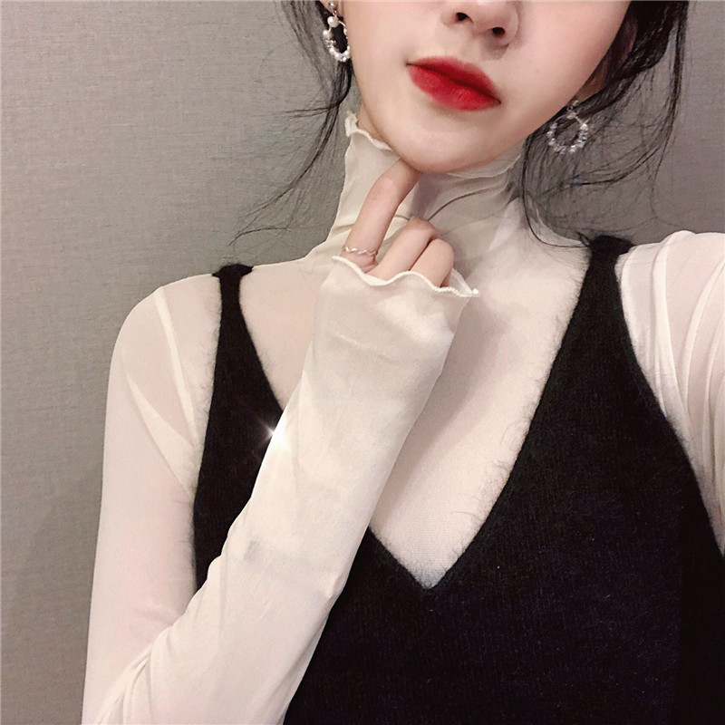 / 復古女神套裝秋冬新款馬海毛小吊帶+網紗打底衫女+菱形針織高腰裙