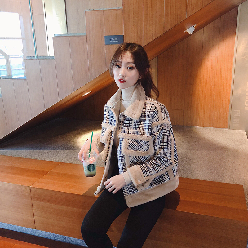 / 韓版毛呢外套女冬2018新款百搭寬松加絨工裝加厚夾克皮毛一體大衣