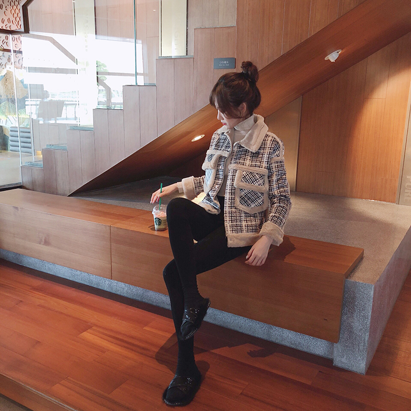 chic港風時尚網紅同款毛茸茸長袖外套女2018新款短款氣質翻領上衣