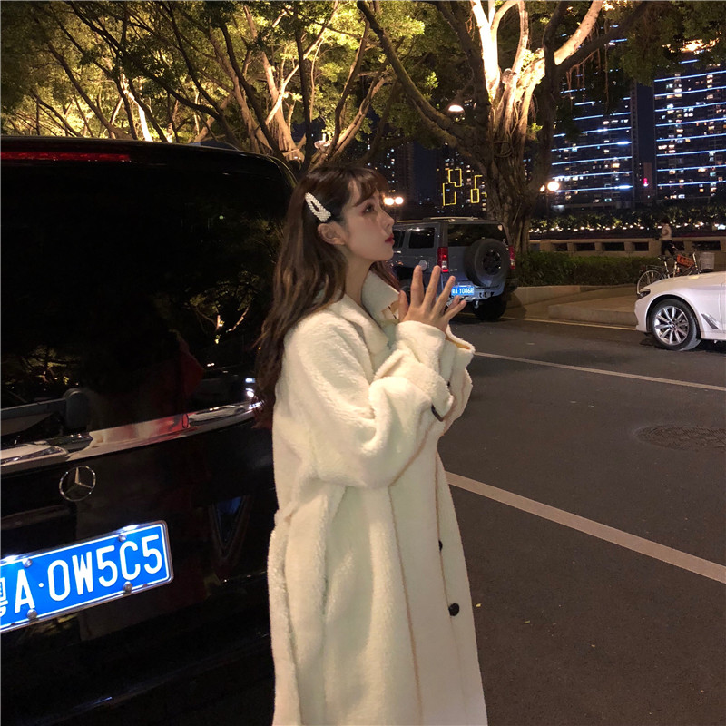 毛呢外套女冬季大衣女新款2018韓版時尚白色毛絨加厚中長款上衣潮