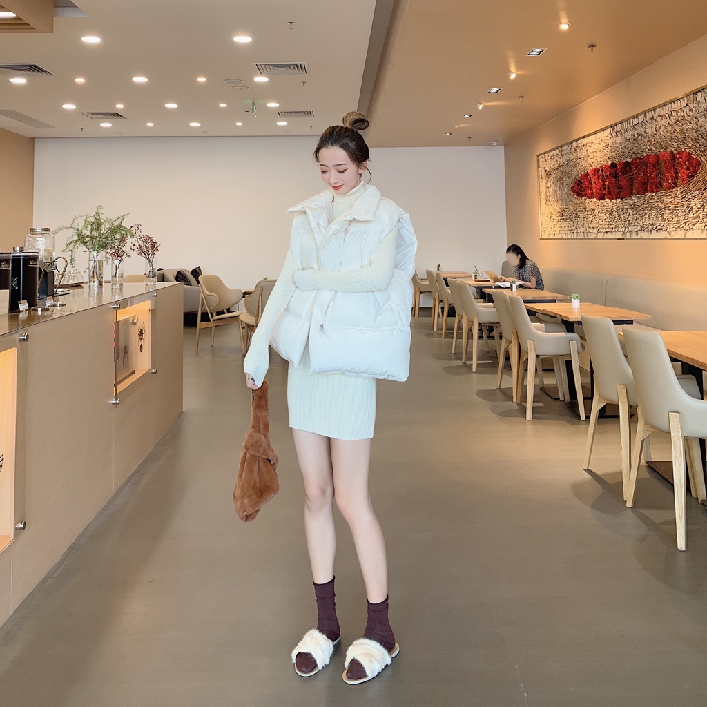 / 面包服冬季新款韓版可愛短款羽絨服棉襖+百搭修身針織裙