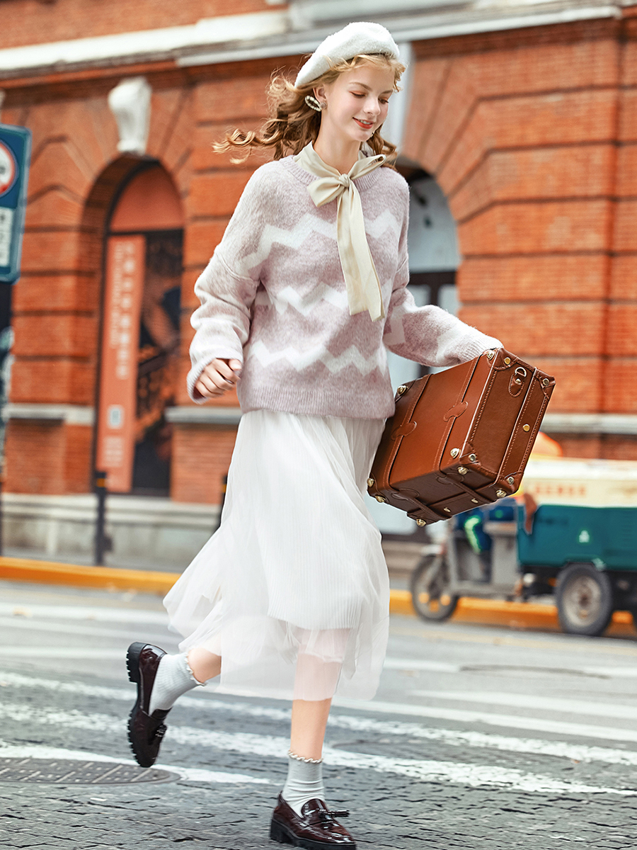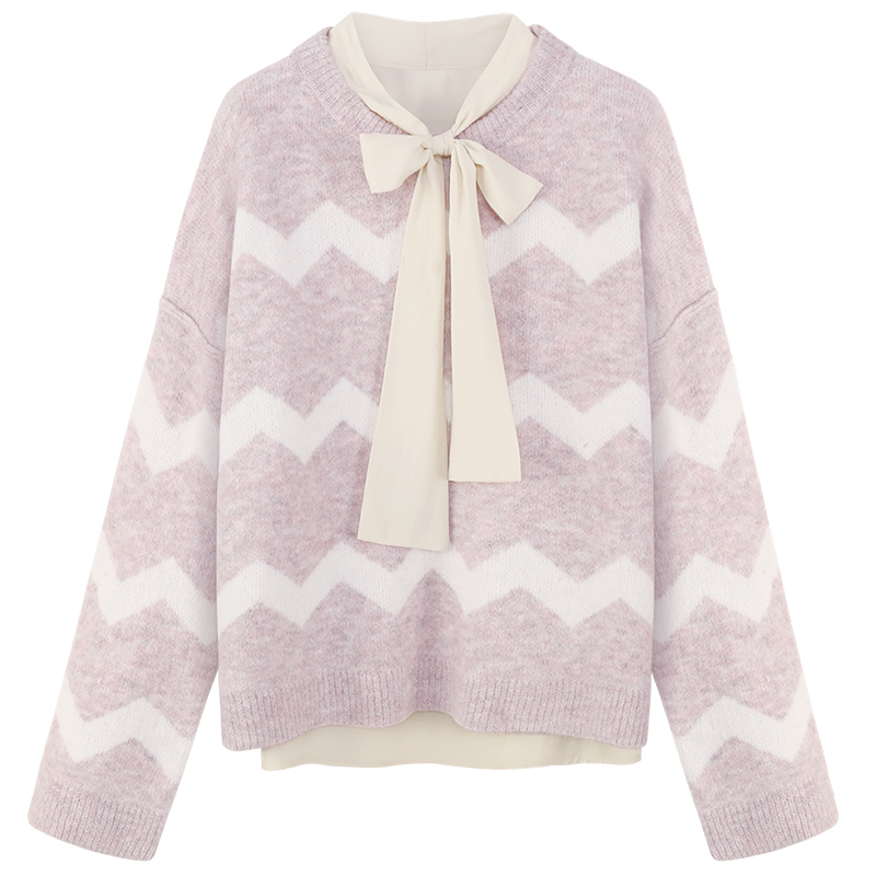 MG小象慵懶風套頭毛衣女冬季新款蝴蝶結打底襯衫寬松長袖圓領上衣