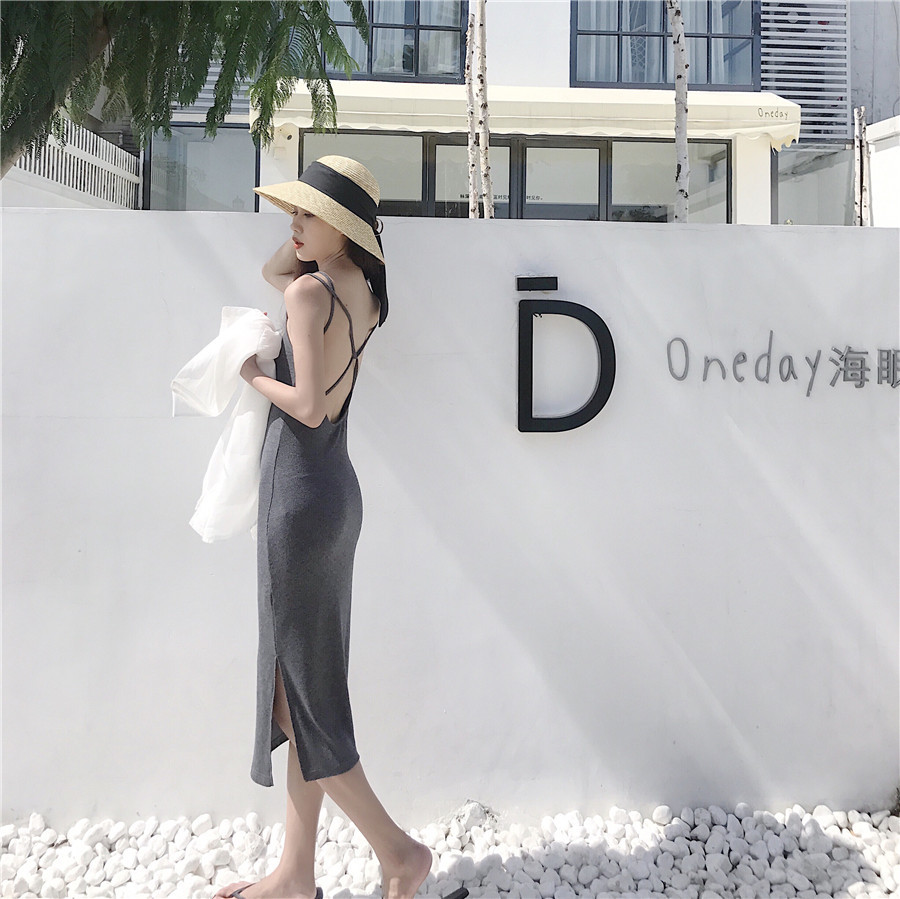 / 夏韓風chic小心機性感露背吊帶氣質顯瘦中長款修身連衣裙女打底裙