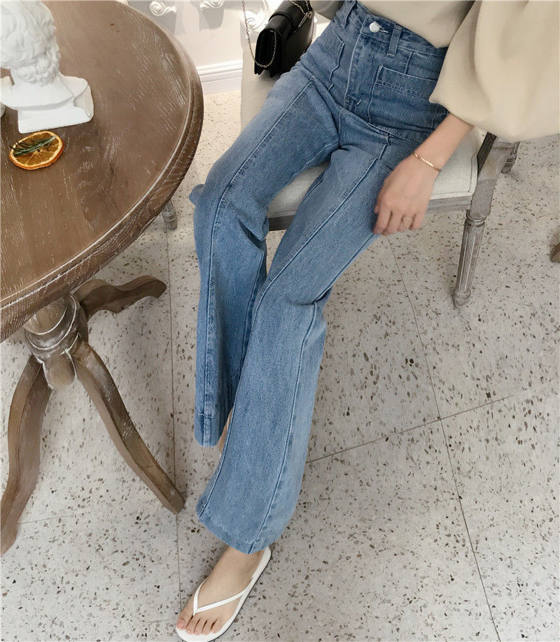 / 新款韓版百搭chic小清新氣質時尚復古高腰顯瘦顯高闊腿喇叭牛仔褲