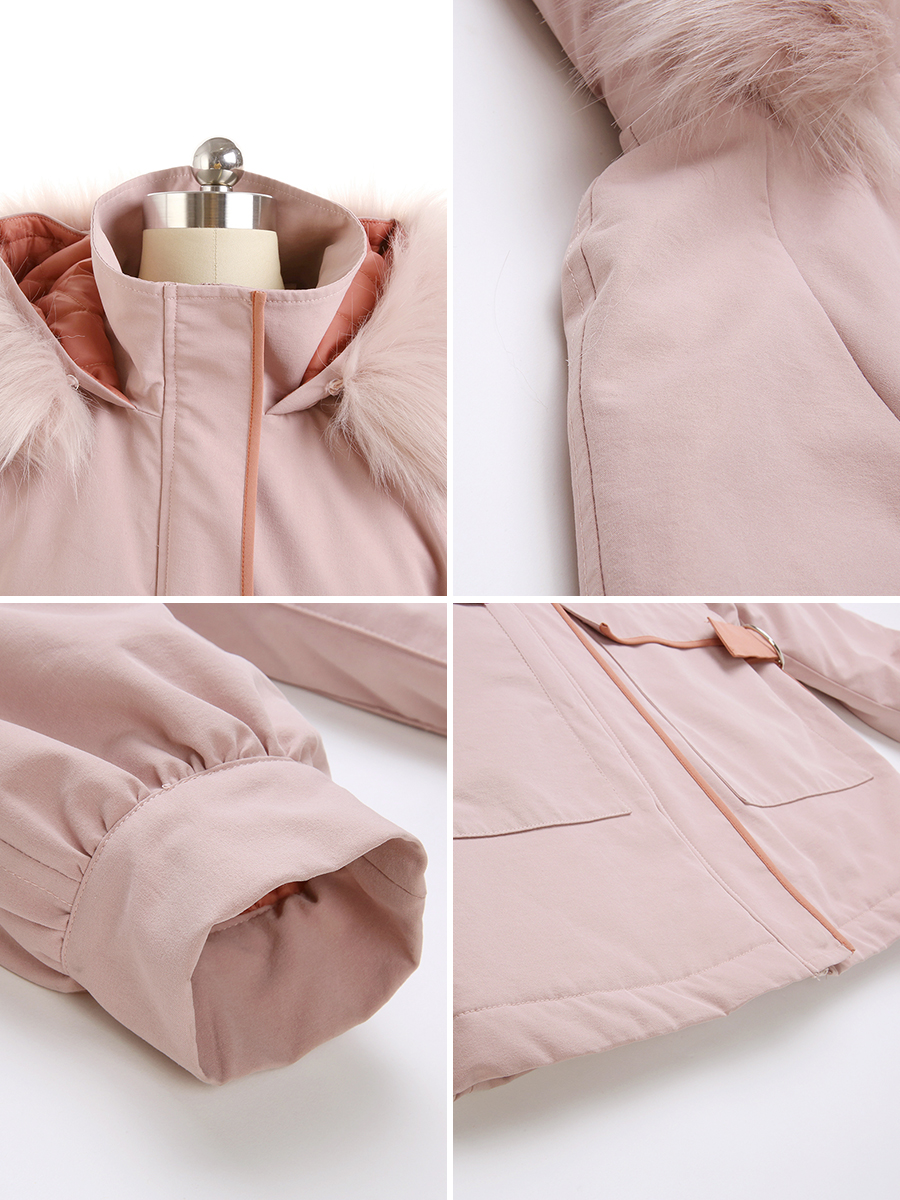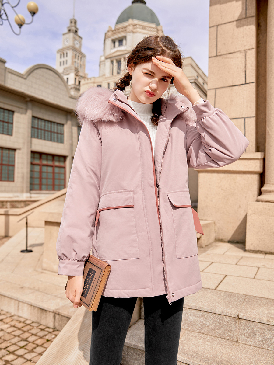 MG小象軟妹棉服女2018新款韓版學生寬松棉衣粉色大毛領冬季外套潮